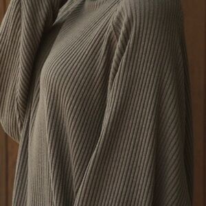 Stay warm and stylish with this cozy ribbed knit sweater. Perfect for any casual outing.