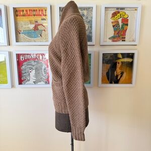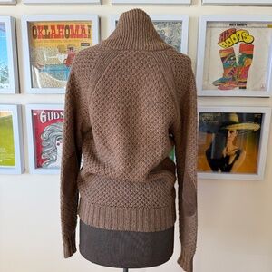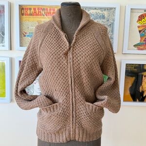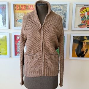Cozy Vintage 80s brown zip cardigan with leather elbow patches
