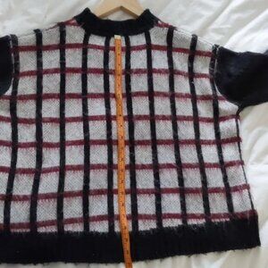 Super cozy and warm sweater from Twintip. Black sleeves with red and black squares with white. Slightly cropped. Only worn a few times.
