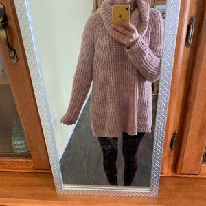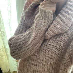 Oversized pink sweater, has multi coloured yarn detail. Very cuddly, nice over leggings or worn as a dress.