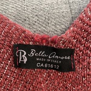 Belle Amore dusty rose wrap with silver ombré shimmer. Acrylic/Wool/Alpaca blend. Reinforced stitch at neckline.