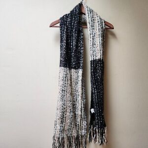 Cozy oversized long knit scarf / beige and black / Madison 88