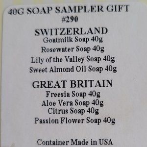 Names of individual soaps listed in photo attached