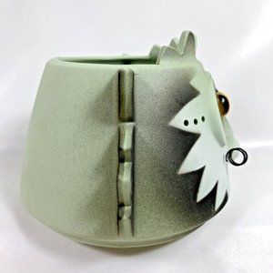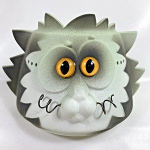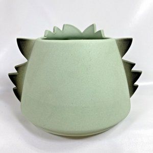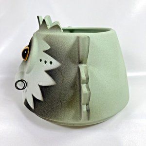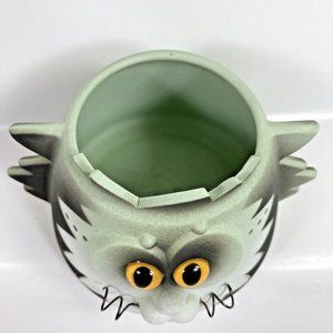 Crack Pot Pottery Bisque Green Black Cat Head Candle Holder Wire Whiskers.