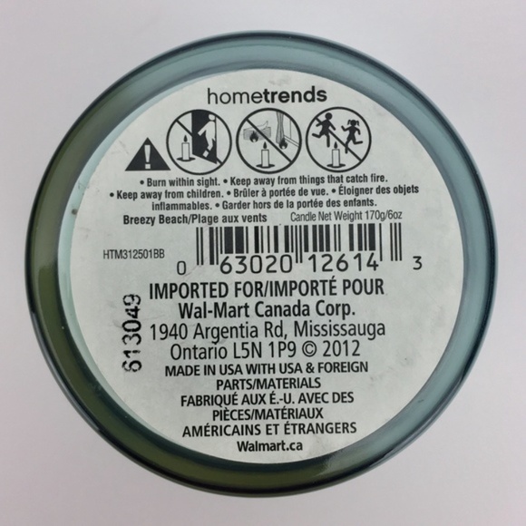 Straight sided glass jar with wooden top. 6 ounces. Made in USA. 2012. Seafoam green. Breezy Beach Scent.