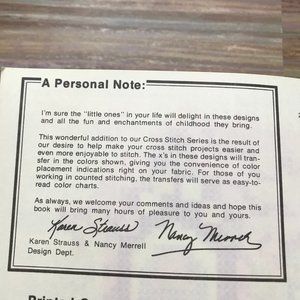 Craftways Iron-On Transfers for Cross Stitch "Tiny Tots" has 16 pages filled with nursery rhyme, fairy tale, and farm animal designs for you to create your own custom projects from! Vintage from 1981, the transfers are unused; cover of book has creasing/wear from storage.