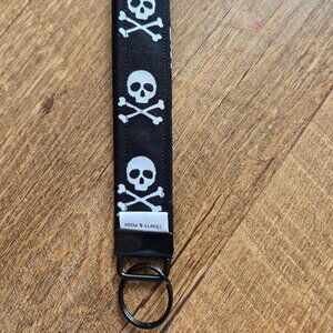 Lovely, black with white skull and crossbones print, keychain wristlet, handmade by me. These are perfect for your keys, keychains and/or keychain wallet. Makes it easy to hang your keys up, pull out of your purse or tote or wear on your wrist so you never lose your keys.