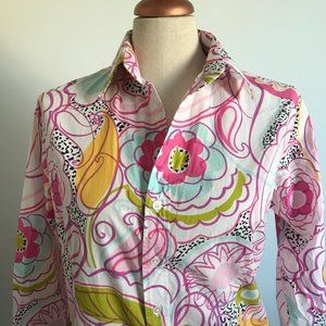 Craig Taylor - Pink & White Paisley / Floral Top - Buttun down - long Sleeve - excellent pre-owned condition
