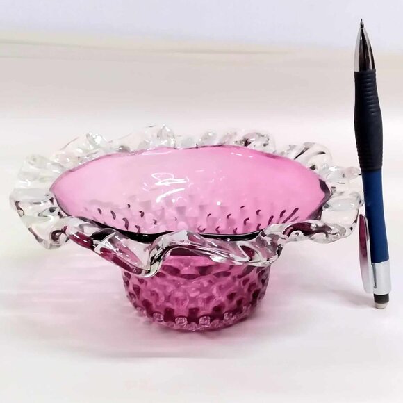 Cranberry Glass Decorative Dish with Clear Glass Ruffle Top