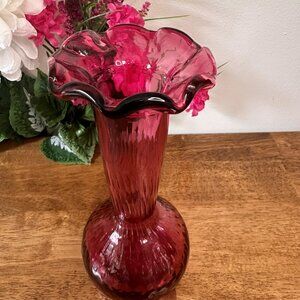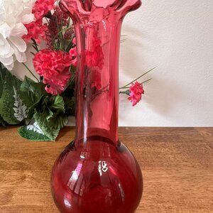Cranberry Glass Vase Mid Century Blown Art Ruby Red Vintage Home Decor