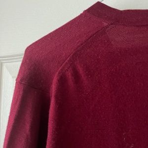 Medium sized Cranberry/Burgundy Pure New Wool Cardigan from Uniqlo. Several years old. Few small moth eaten areas, but overall a good cardigan still. Great colour and very light-weight. Perfect Layering piece. Happy to make a deal . Try bundle with something else and I'll make a deal.