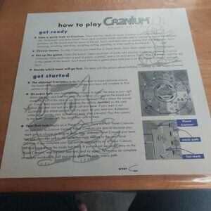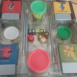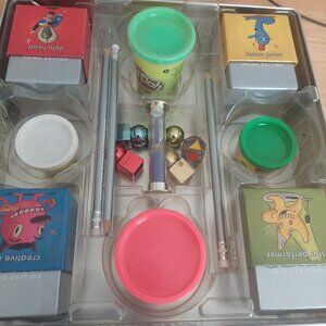 All game pieces are accounted for except sculpting clay dried up, so we used playdoe instead. Also missing one silver Cranium pencil. in excellent used condition. fun game for the whole family.