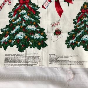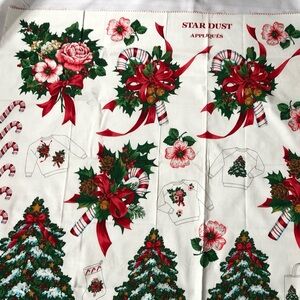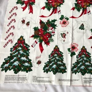 Candy canes, Christmas trees, Christmas candy cane corsages and florals are featured on this piece by Cranston Print Works.