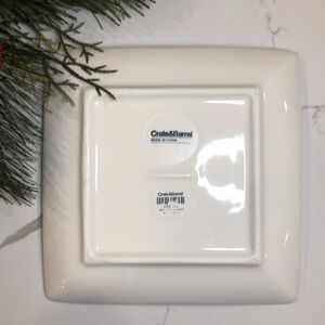 Crate and Barrel Snowflake Embossed White Appetizer Dessert Square Plates (4)