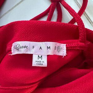 Stunning red Crave Fame jumpsuit, size Medium β a sleek, flirty one-piece.
