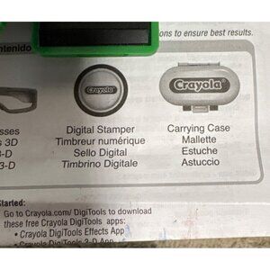 The Crayola DigiTools 3-D Deluxe Pack is an innovative digital art kit designed for use with iPads. It includes a digital crayon, stylus, airbrush, and 3-D glasses, all neatly housed in a compact carrying case. This set enables creative expression through digital media, enhancing artistic capabilities with interactive tools.