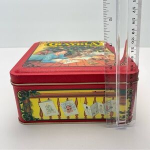 Tin doesn’t have crayons. Tin and ornament is included with set. Minimal rusting on lip of tin. See picture.