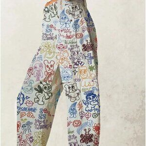 Crayon Drawing Baggy Wide Leg Barrel Horseshoe Jeans Pants