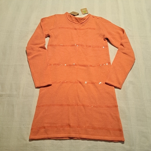 Crazy 8 girls size Large 10-12 sweater dress, light orange & sequin design, New