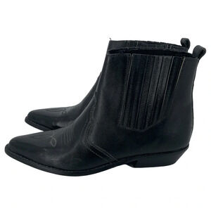 Crazy Horse Ankle Boots Booties Womens 6 Black Leather Cowgirl Festival Slip On