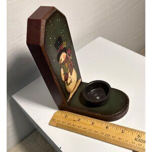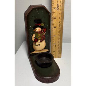 Crazy Mountain Snowman Candle Holder Shelf Wood Folk Art Christmas Country