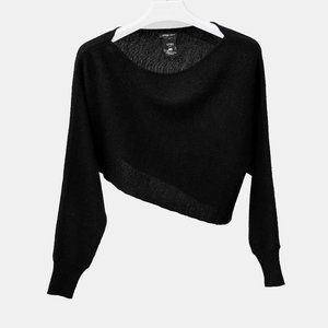 Crea Concept Asymmetrical Black Cropped Wool Sweater