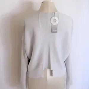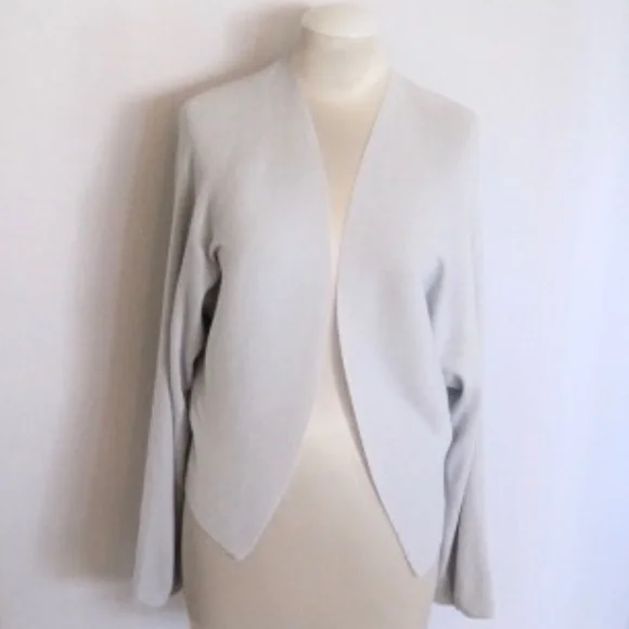Crew Concept open front ribbed cardigan. Color: Light Grey. SIZE: S. Features