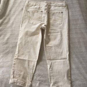 EUC cream jean capris. Have some stretch, length below knee.
