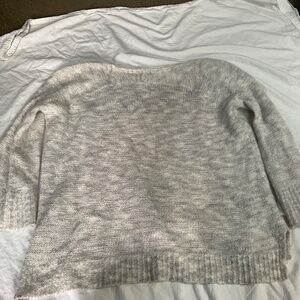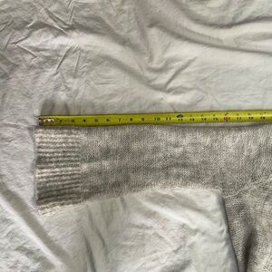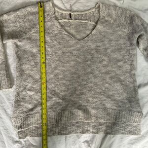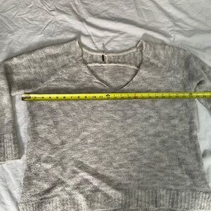 This oversized, soft alpaca and mohair blend sweater is in clean, excellent condition. The sleeves are subtly belled, the knit is soft and a bit loose, making this the perfect spring layering piece, and it has quite a wide neck line—again, perfect for layering.