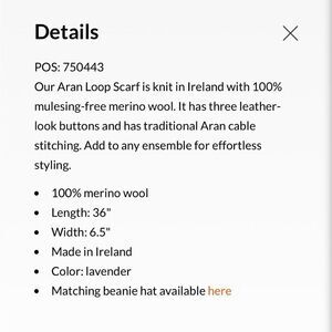 *Cream* Blarney Woolen Mills NWT Merino Aran Loop Scarf