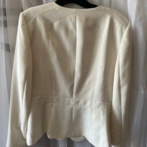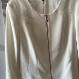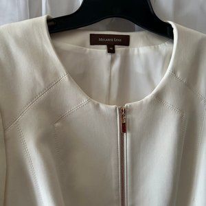 Super pretty off white / cream blazer from Melanie Lyne. Fully lined with lovely satin in cream colour. Gorgeous tailoring details throughout. Rose Gold zipper.