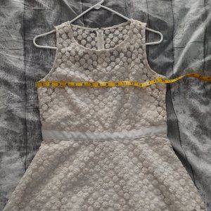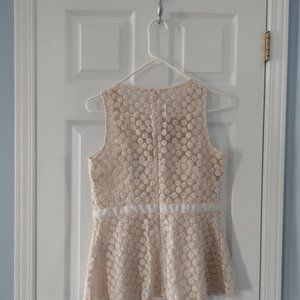 Sleeveless lace blouse with peplum, ribbon detail around the waist, and zippered back. Only worn a few times and in great condition.