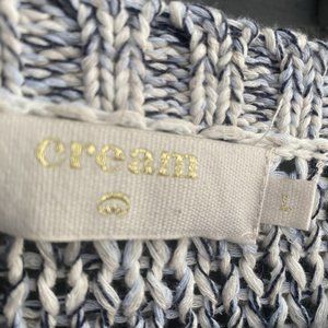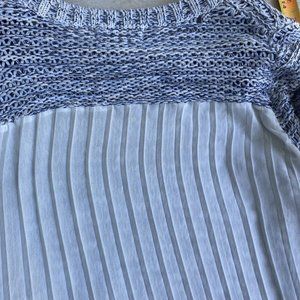 Cream Brand Lightweight Sweater W/Sheer Back Size Large Blue/Cream