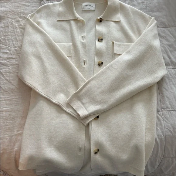 Arizia - Wilfred Free- oversized cream button-up cardigan with front pockets. Perfect for layering.