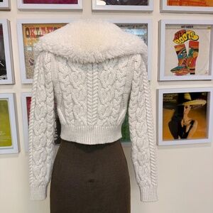 Cream Cable Knit Cropped Cardigan Faux Fur Collar