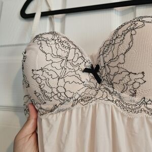 Cream Chemise with Lace Bustier and Flowy Satin Skirt