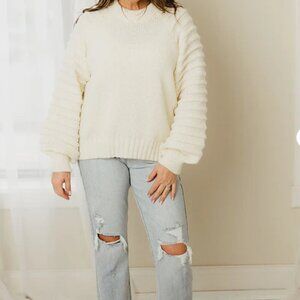 Wrap yourself in comfort and style with our Textured Sleeve Cozy Sweater! Featuring a round neck and long raglan sleeves with textured details, this cozy top will keep you warm and fashionable.