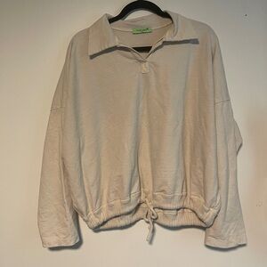 Cream Collared Pullover with Drawstring