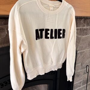 Cream Crewneck Sweater with Puffy “Atelier” Letters