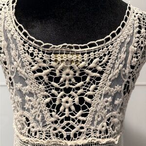 Handcrafted Parisian Collective cream crochet lace dress with intricate floral patterns. Perfect for a beach cover.