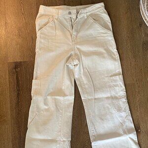 Cream Denim Cargo Pants, 100% Cotton, Size 8