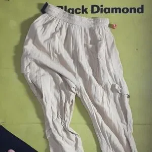Comfortable cream pants with a drawstring waist. Perfect for casual wear.