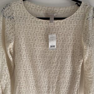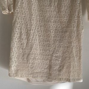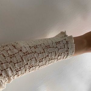 Crochet/Lace dress with tags. Body portion is lined with soft cotton material. 3/4 sleeves are not lined (as shown in pictures), and have zips are the end. The dress also zips up the left side.