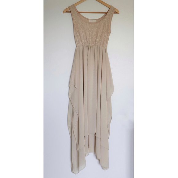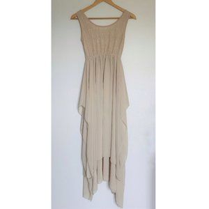 Cream Empire Waist Chiffon and Lace Sleeveless Long Flowy Dress