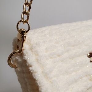 This cream shoulder purse is suitable for every occasion. Smaller in size. Fluffy to the touch and has a bit if sparkle to the colour. Only one available.