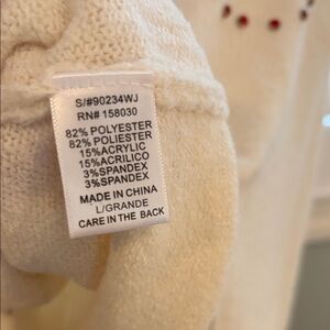 Stay cozy and stylish with this cream sweater featuring a charming heart pattern. Perfect for any outing, especially around the holidays.