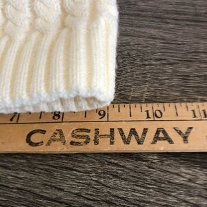 Cute cable knit off white winter hat with faux fur Pom-Pom on the top.