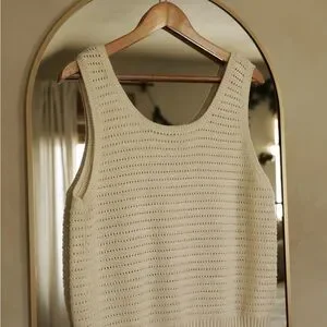 Cream knit tank. Can be worn on its own or layered up. Nice fit. From clean, smoke free home.