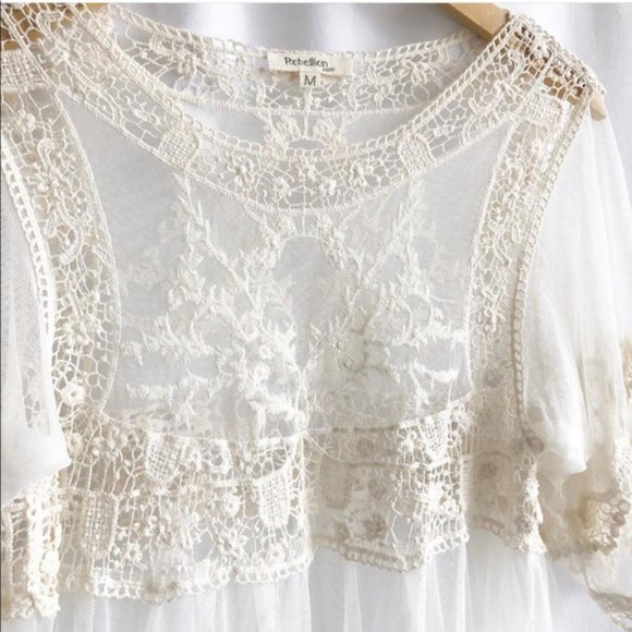 Cream Lace Crochet Boho Flowy Top, 3/4 Bell Sleeve. Size med.