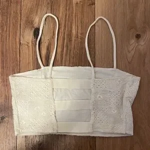 Elegant cream white boho lace top with delicate patchwork lace detail ♡ Cropped fitted style with thin straps and structured paneling on the back for a flattering fit. Dreamy soft feminine piece that pairs perfectly with anything ♡